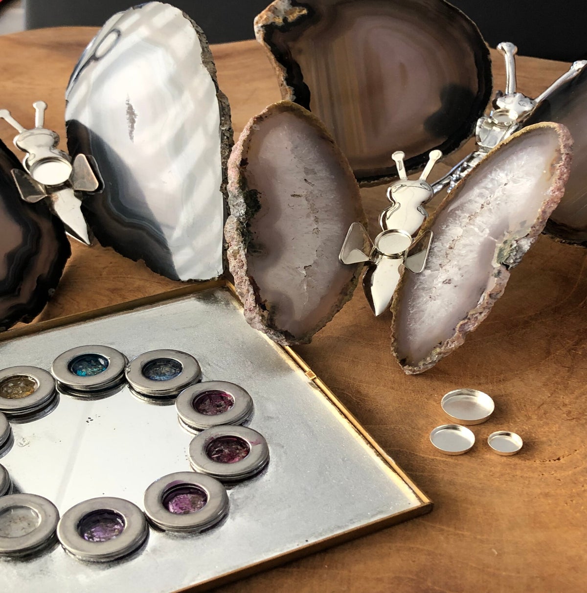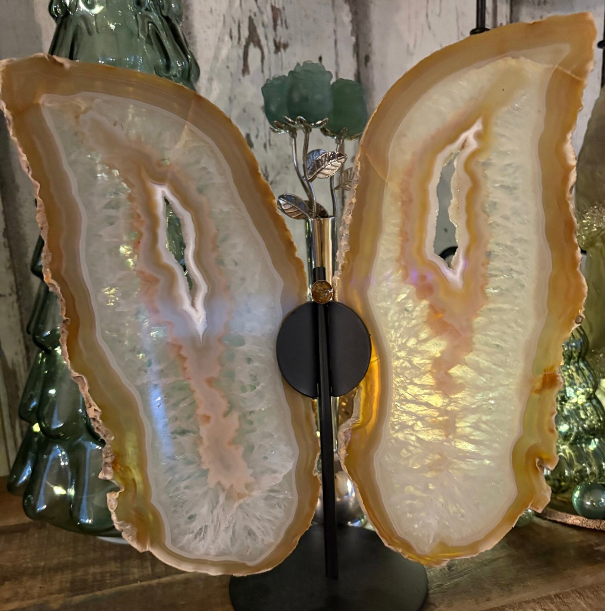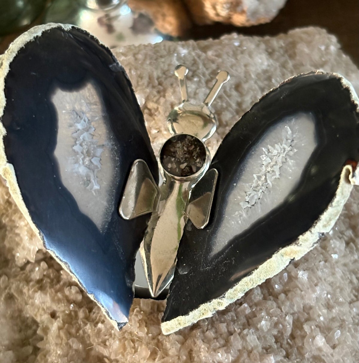 Bij mij vindt u prachtige agaat vlinders die ik voor u kan personaliseren tot een mooi gedenkstuk van uw dierbare. Er wordt een zilveren bakje op geplaatst waar de as of het haar van uw dierbare in wordt verwerkt met een laag gekleurde hars. Alle vlinders zijn anders van kleur en vorm waardoor u een echt uniek gedenkstuk heeft.